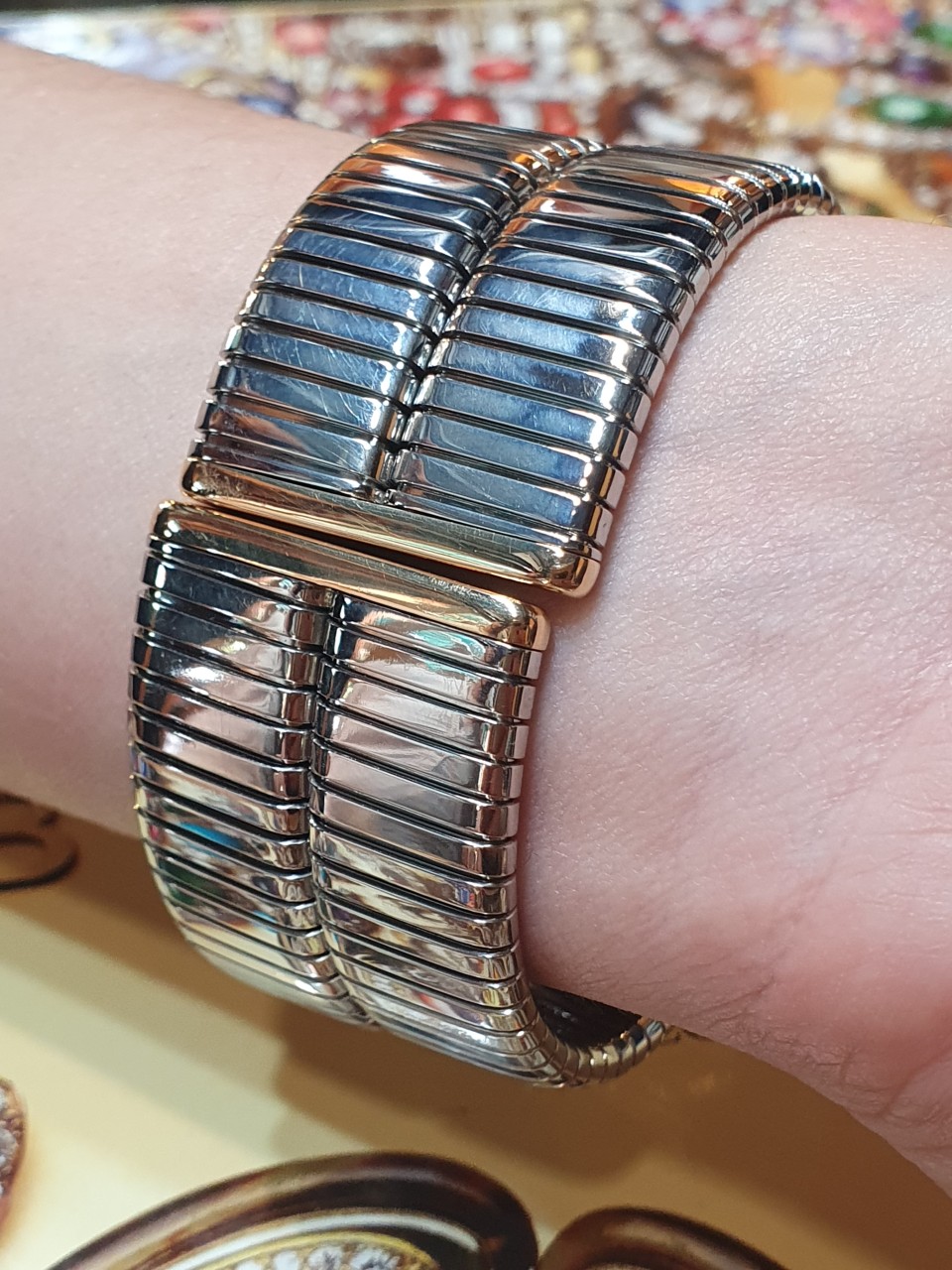 Bracciale doppio Tubogas in acciaio e finiture in oro giallo