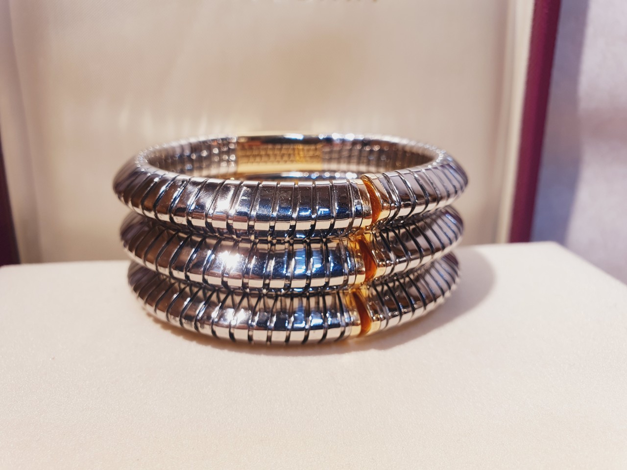 Bracciale a Tubogas del 1988 formato da tre bande di sezione triangolare in acciaio.