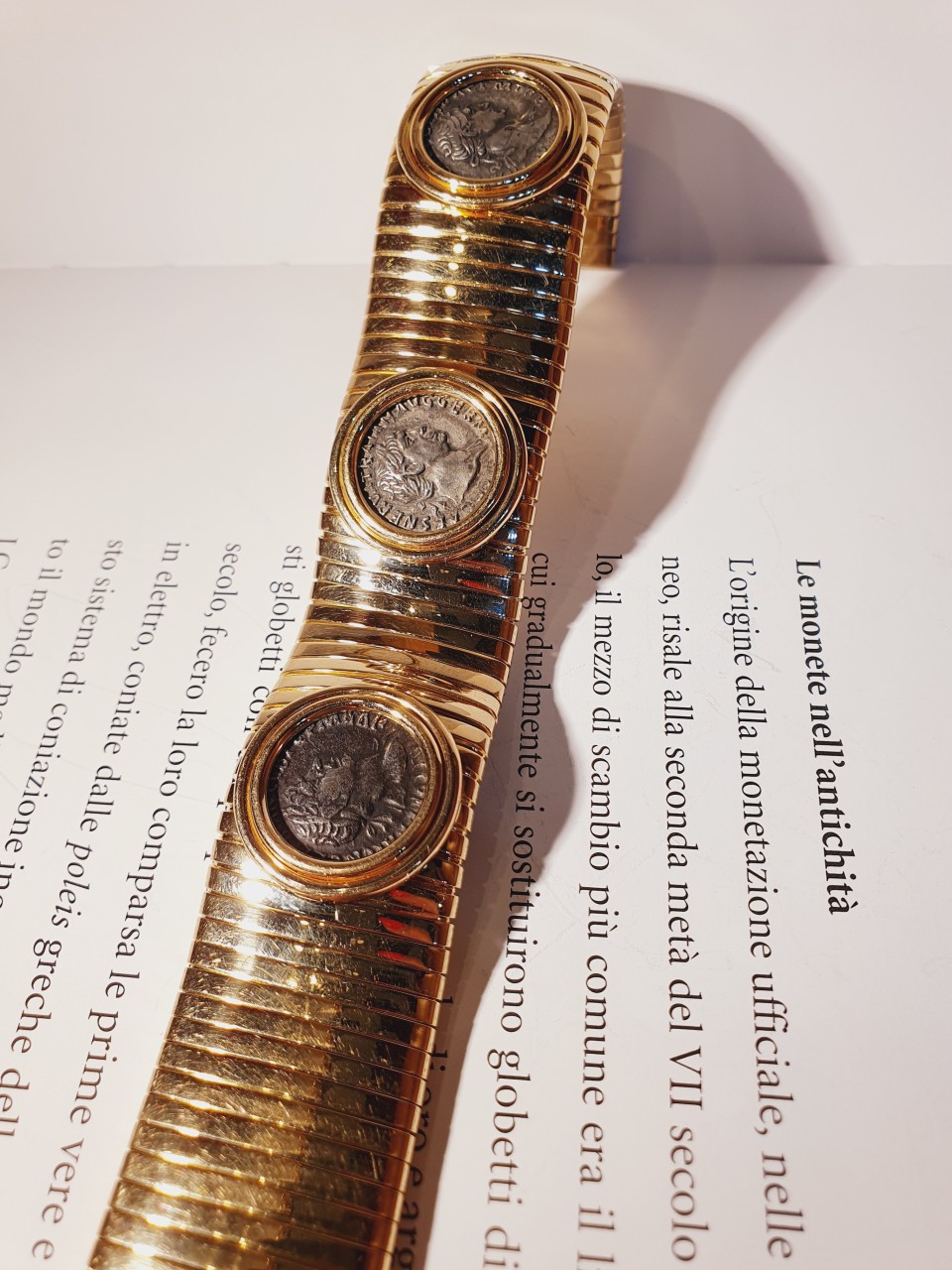 Incastonate tra le maglie flessuose dell'iconica maglia Tubogas. le monete spiccano come gemme preziose